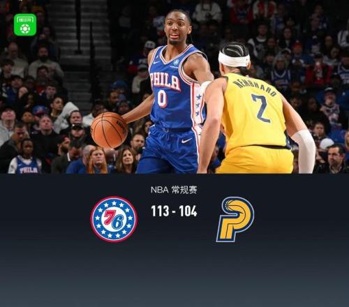 第四节76人马克西拿下14分,步行者西亚卡姆拿下11分,最终76人113-104战胜步行者