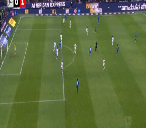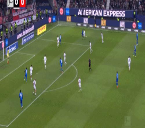 第50分钟,扳回一城,科赫二连击完成破门,法兰克福1-2